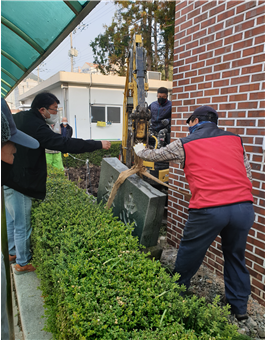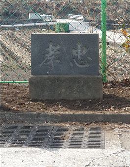 [구. 예절실 옆 텃밭에 있던 충효탑] [교문 입구에 설치된 모습]