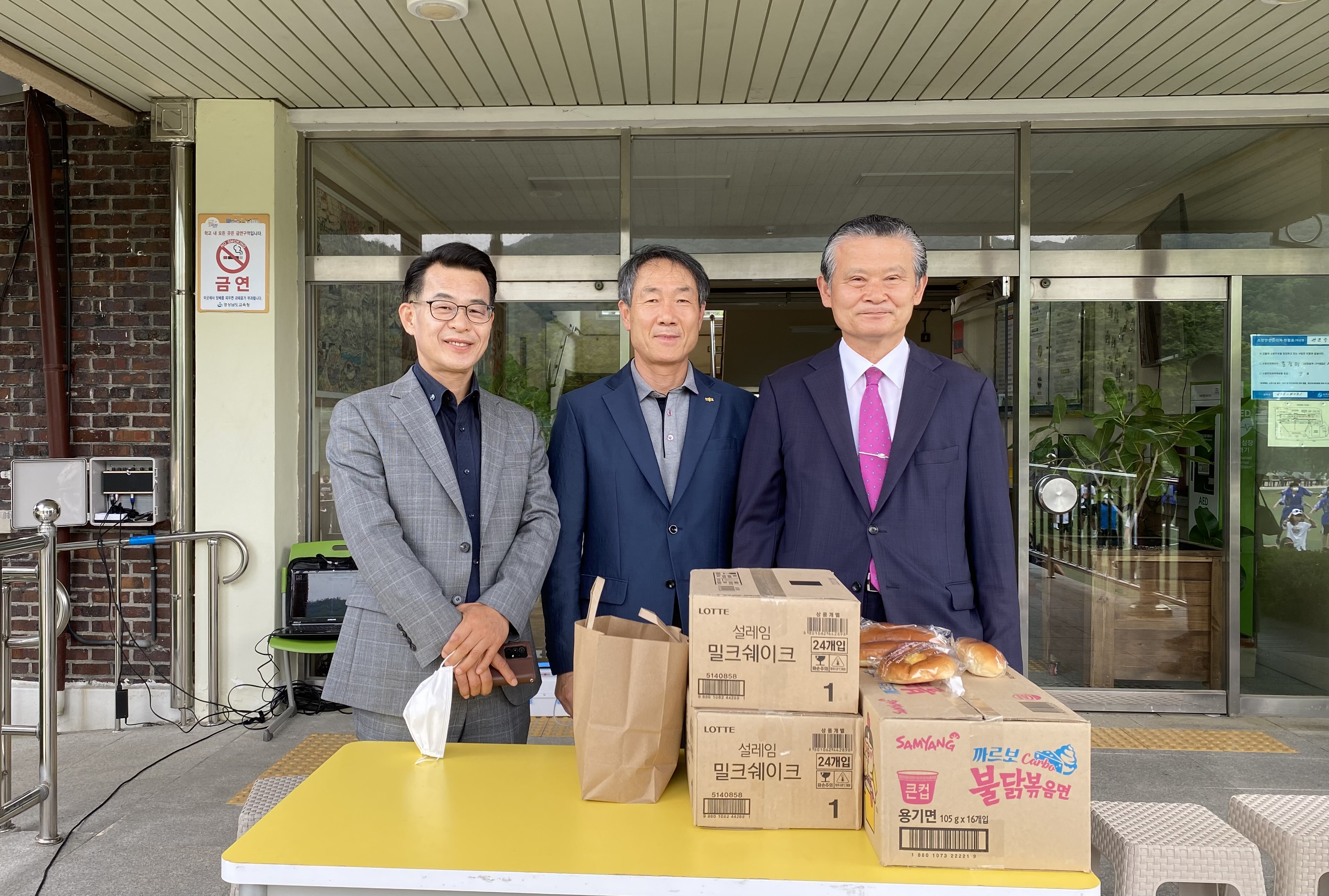 5월13일 2022. 연초중 어우름체육대회에 전교생에게 줄 간식과 함께 후배들을 격려하러 방문하였다.